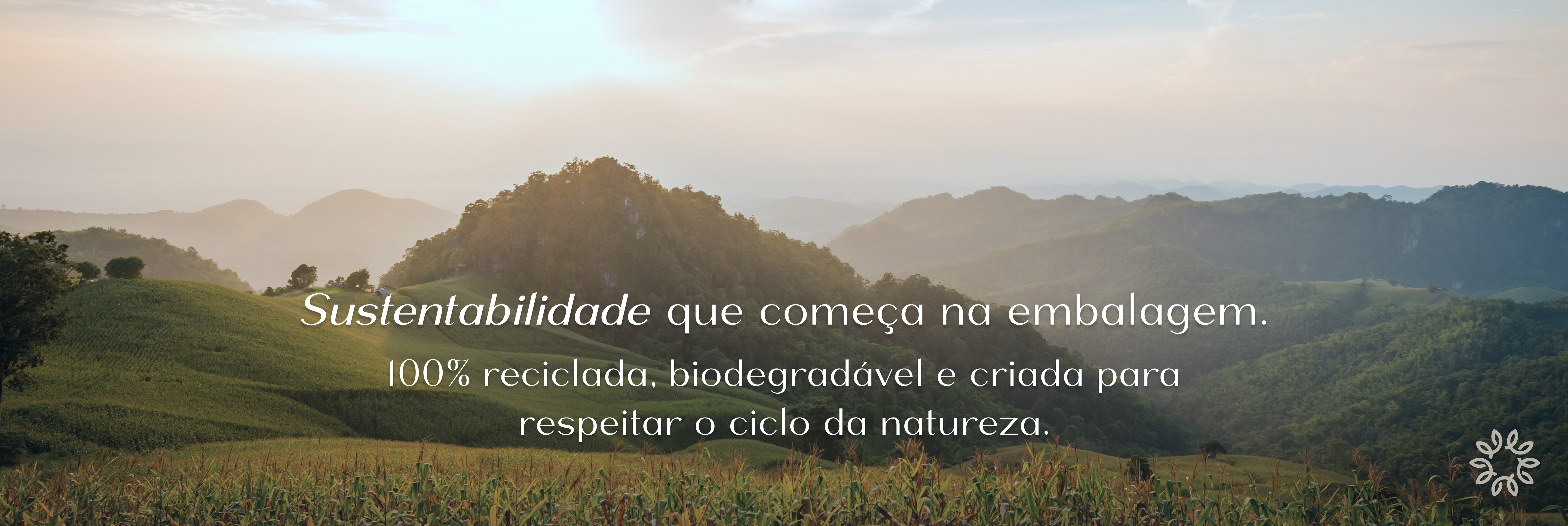 Nossas embalagens utilizam até 100% PCR, ativos biodegradáveis e frascos monomateriais. Cuidamos da pele, da alma e do planeta.