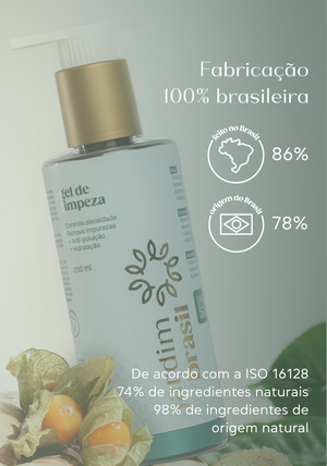 Com raízes no Brasil: 78% de origem brasileira (fontes vegetais ou minerais de terras brasileiras) e 86% dos ingredientes produzidos no Brasil — reforçando uma cadeia mais próxima, consciente e conectada ao nosso território.