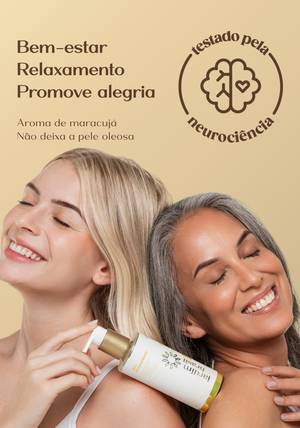 Sinta o cheirinho alegre do maracujá e finalize enxaguando com bastante água. Não precisa lavar com sabão, o nosso óleo sai completamente com água.